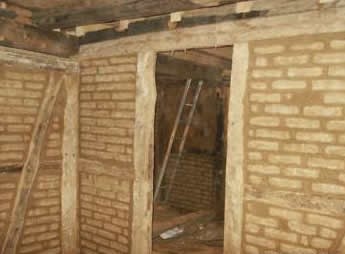 - Ausführung der Innenputzarbeiten mit Lehmputz