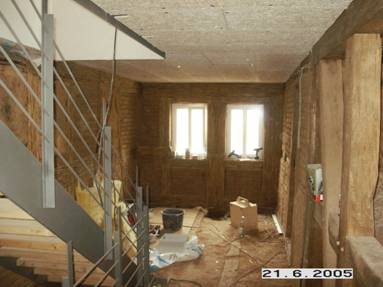 Durch einen Wohnungsbrand stark geschädigte Bausubstanz. Im Sommer 2004 wurde mit dem Wiederaufbau begonnen.