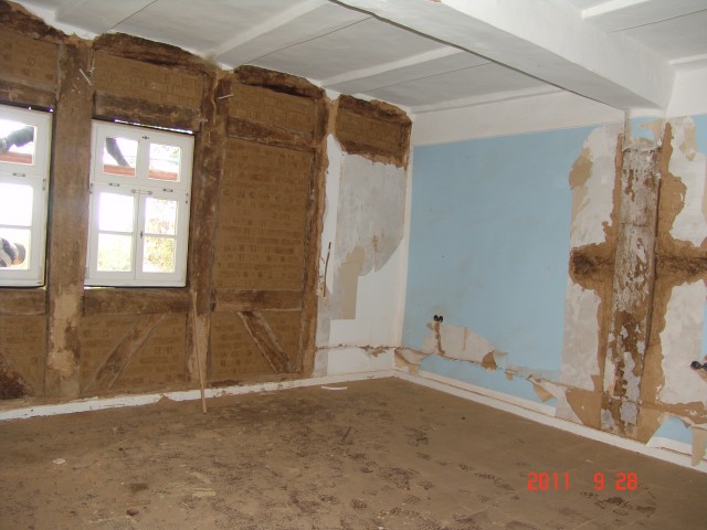 (2012) Lehminnenputzarbeiten in einem Gutshof bei Schwalmstadt , ca. 70 To. Lehmputz